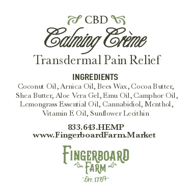 Transdermal CBD products such as Fingerboard Farm’s CBD Calming Crème can be quickly and easily applied directly to the skin for immediate, localized relief from pain or other inflammatory symptoms. Topical CBD products are excellent for use post-workout to minimize muscle soreness. Sore, stiff, and tired hands, feet, back, and neck can benefit greatly from direct application for quick relief. Due to CBD’s anti-inflammatory properties, transdermal application also has the potential to calm irritated and inflamed skin. Users report feeling the soothing, warming, and rejuvenating effects immediately upon application, and have had many grateful customers return for more as their easy, go-to treatment for aches and pains.
