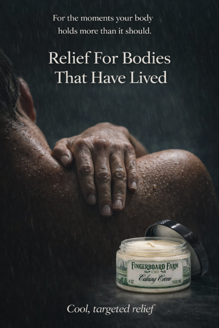 Transdermal CBD products such as Fingerboard Farm’s CBD Calming Crème can be quickly and easily applied directly to the skin for immediate, localized relief from pain or other inflammatory symptoms. Topical CBD products are excellent for use post-workout to minimize muscle soreness. Sore, stiff, and tired hands, feet, back, and neck can benefit greatly from direct application for quick relief. . Users report feeling the soothing, warming, and rejuvenating effects immediately upon application, and have had many grateful customers return for more as their easy, go-to treatment for aches and pains. Directions for Use: Apply a generous amount (start with a dime-size per area and increase as needed) to affected joints or muscles. Massage thoroughly into clean skin until fully absorbed. For best results, use 2–3 times daily.